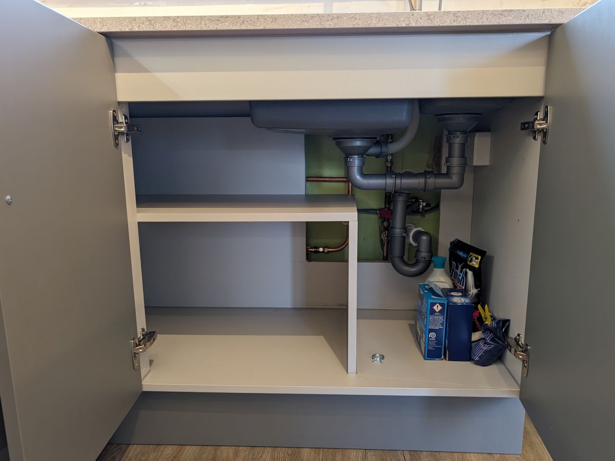 - 1250mm custom sink unit to optimise corner storage.
